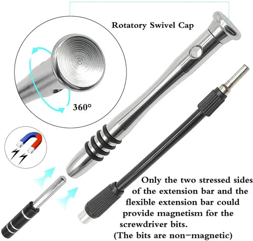 Comes with 115 precision bits covering all screw types like Phillips, Torx, Flathead & more